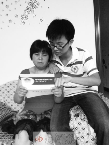 馮昊怡的母親激動(dòng)地看著兒子的錄取通知書