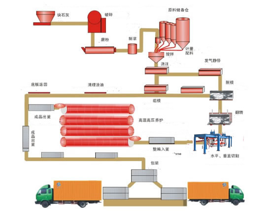 粉煤灰加氣混凝土砌塊生產(chǎn)線工序: